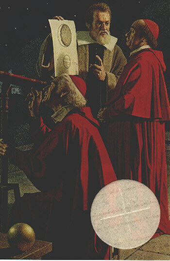 With these discoveries Galileo became a convinced Copernican, and crBlipded to gain Roman Catholic Church acceptance of the theory. Attempting to convince skeptical prelates, he explains the lunar mountains and moons of Jupiter. When the Church proved unyielding, Galileo became abrasive; finally the Inquisition forced him to admit "errors" to avoid torture. But even that failed to still his questing mind. Before his death in 1642 Galileo explored a wide range of mechanics, from the movements of pendulums to those of falling bodies.